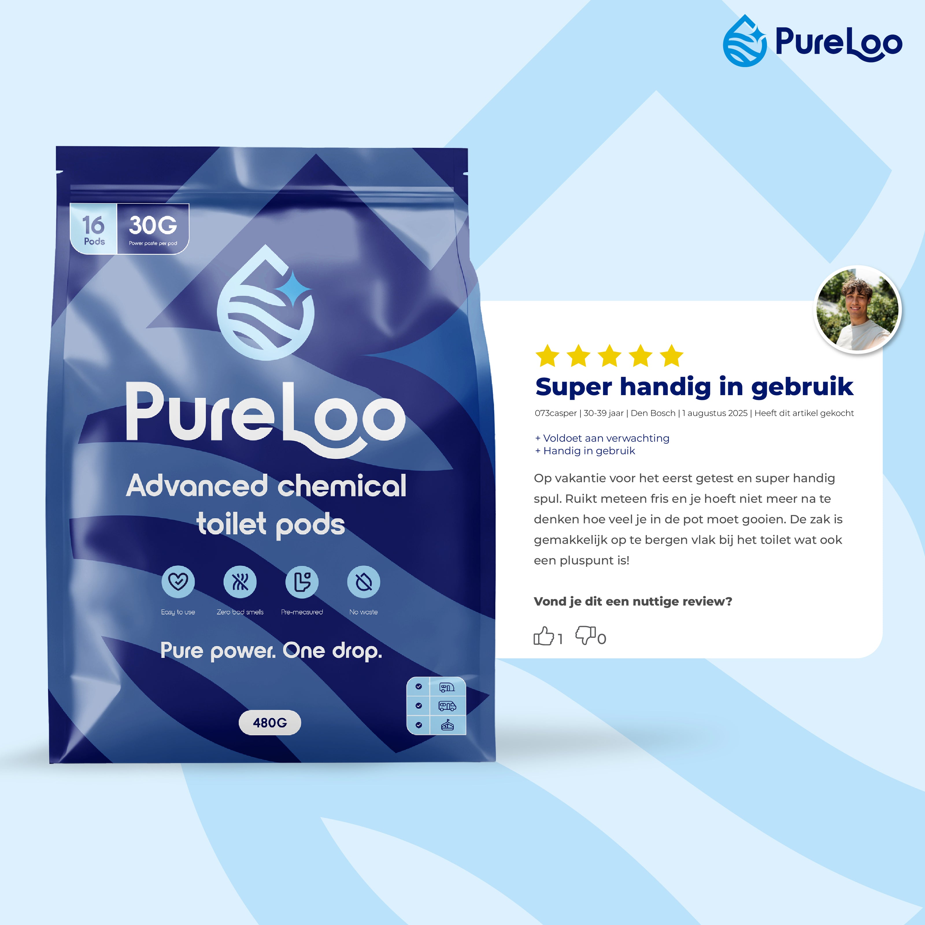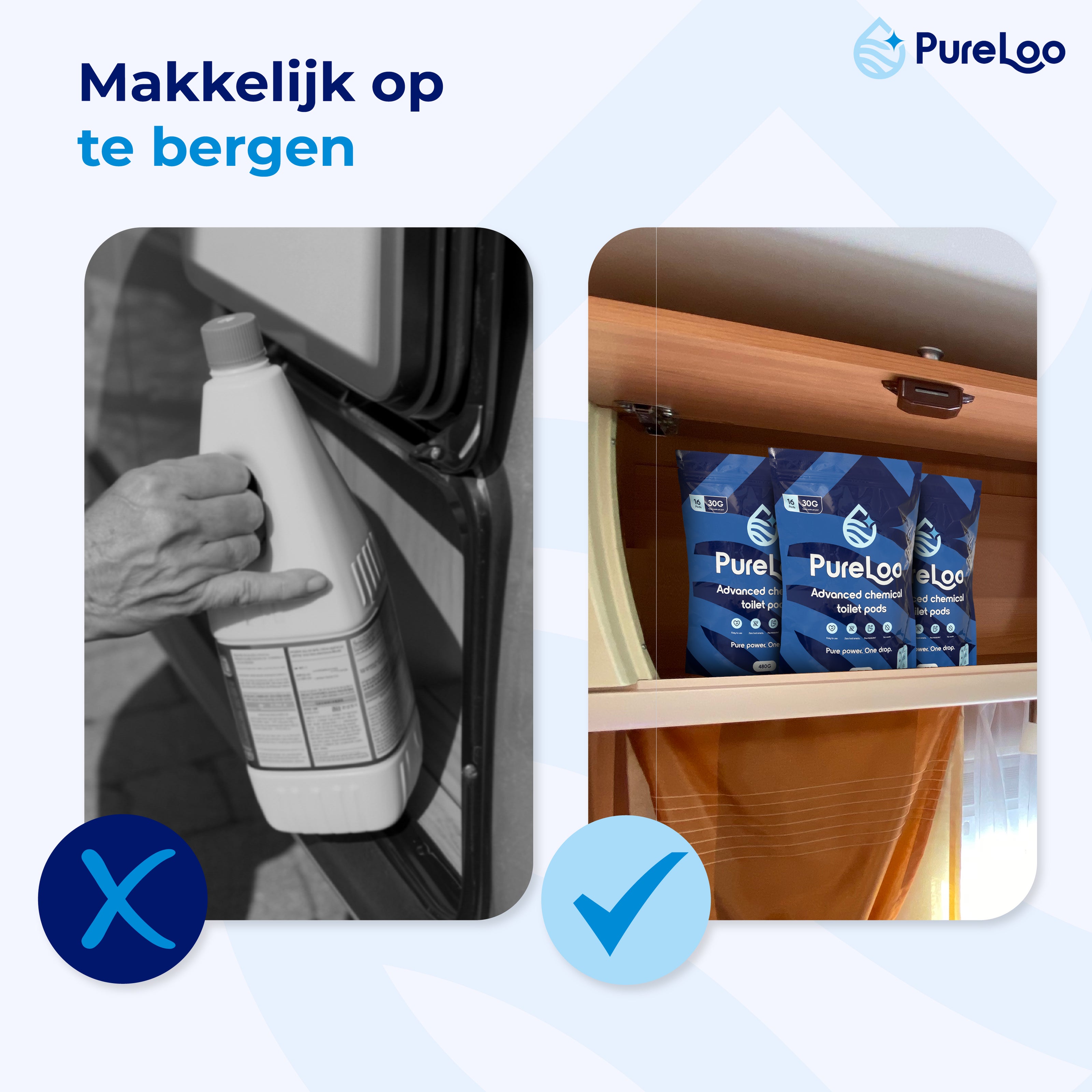 Altijd een schoon en fris chemisch toilet met onze Pureloo pods.
